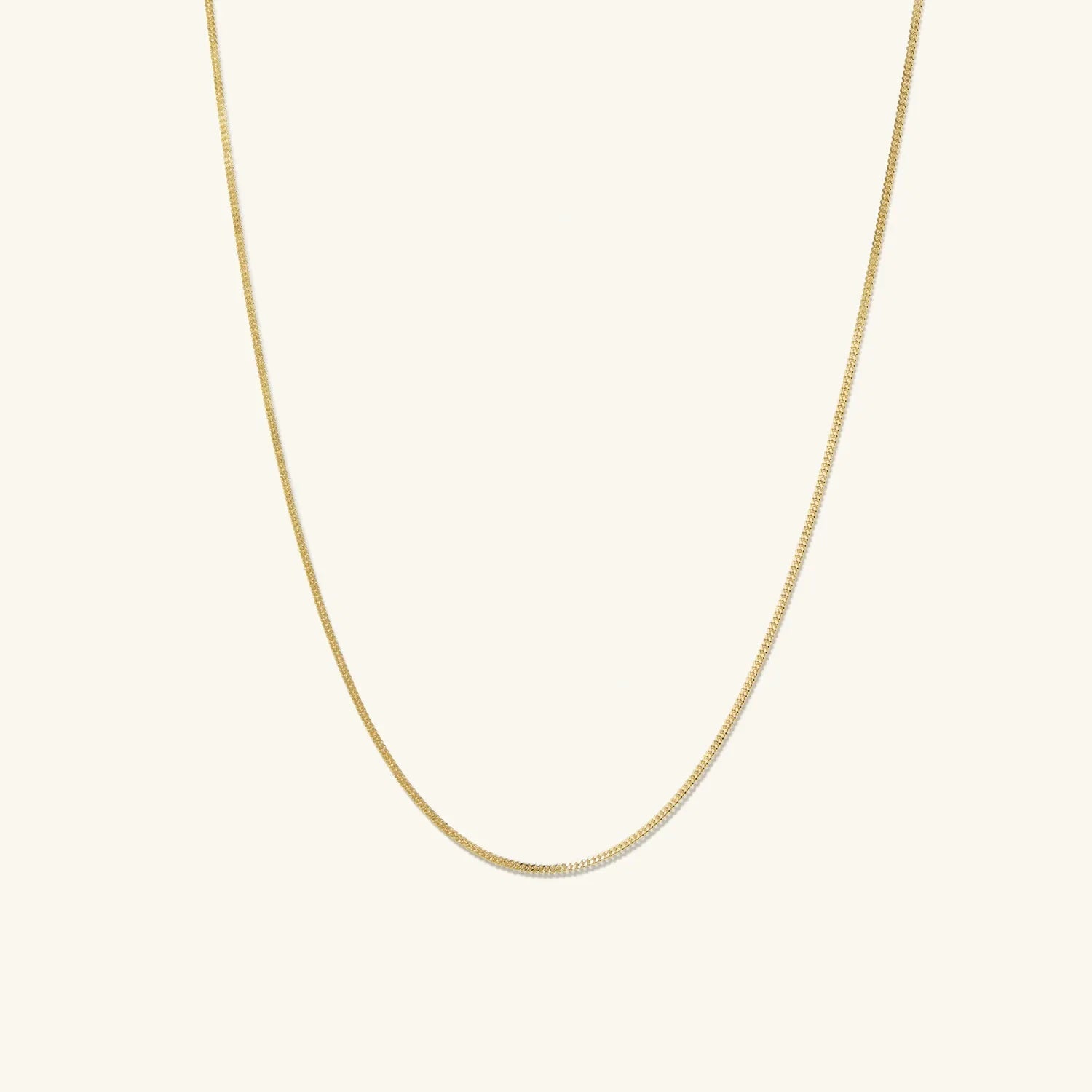 Your new go-to chain in a slimmed-down design. This reflective piece catches the light perfectly from all angles— wear it every single day, at work, while showering, or working out. Handcrafted in 14k solid gold and available in 16 to 24-inches.