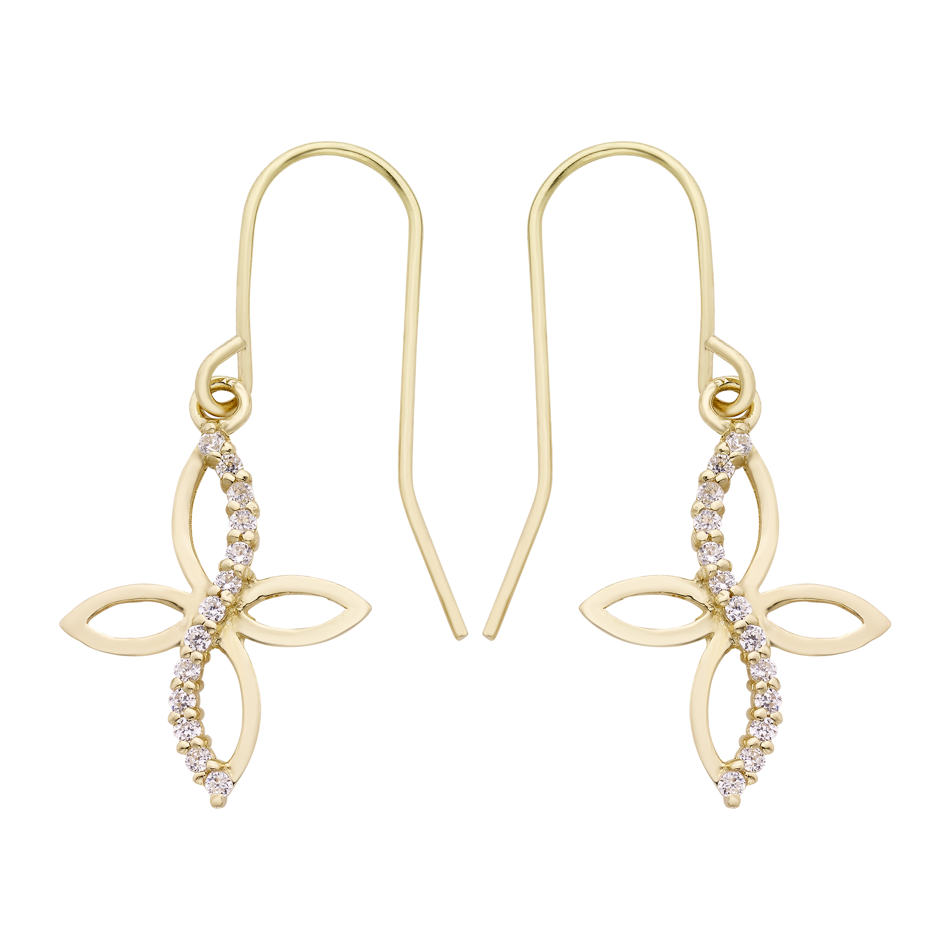 14k Gold Lab-Created White Topaz Cross Drop Earrings