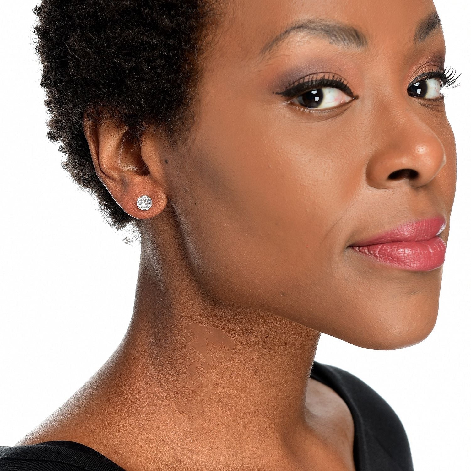 Subtle sparkle at a size you can manage, this pair of gold stud earrings makes a perfect addition to your look. These earrings come in not just your choice 14K white, but are also available in a selection of sizes. A 4mm, 5mm, 6mm, 7mm or 8mm round pair of simulated diamond dazzles at the center of each stud, while push backs keep this shimmering set of studs perched in place.