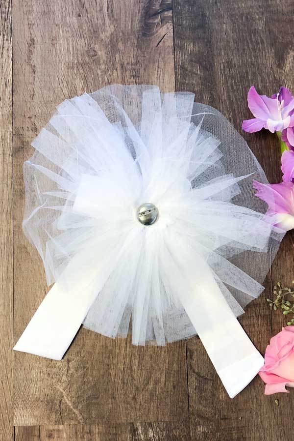 - Soft 2-layer polyester veil with sewn-on adorable booty cotton ribbon bow.
