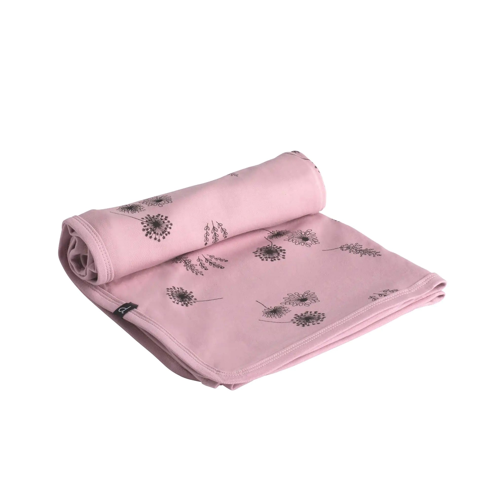 Organic Cotton Blanket Printed Flowers Dusty Purple