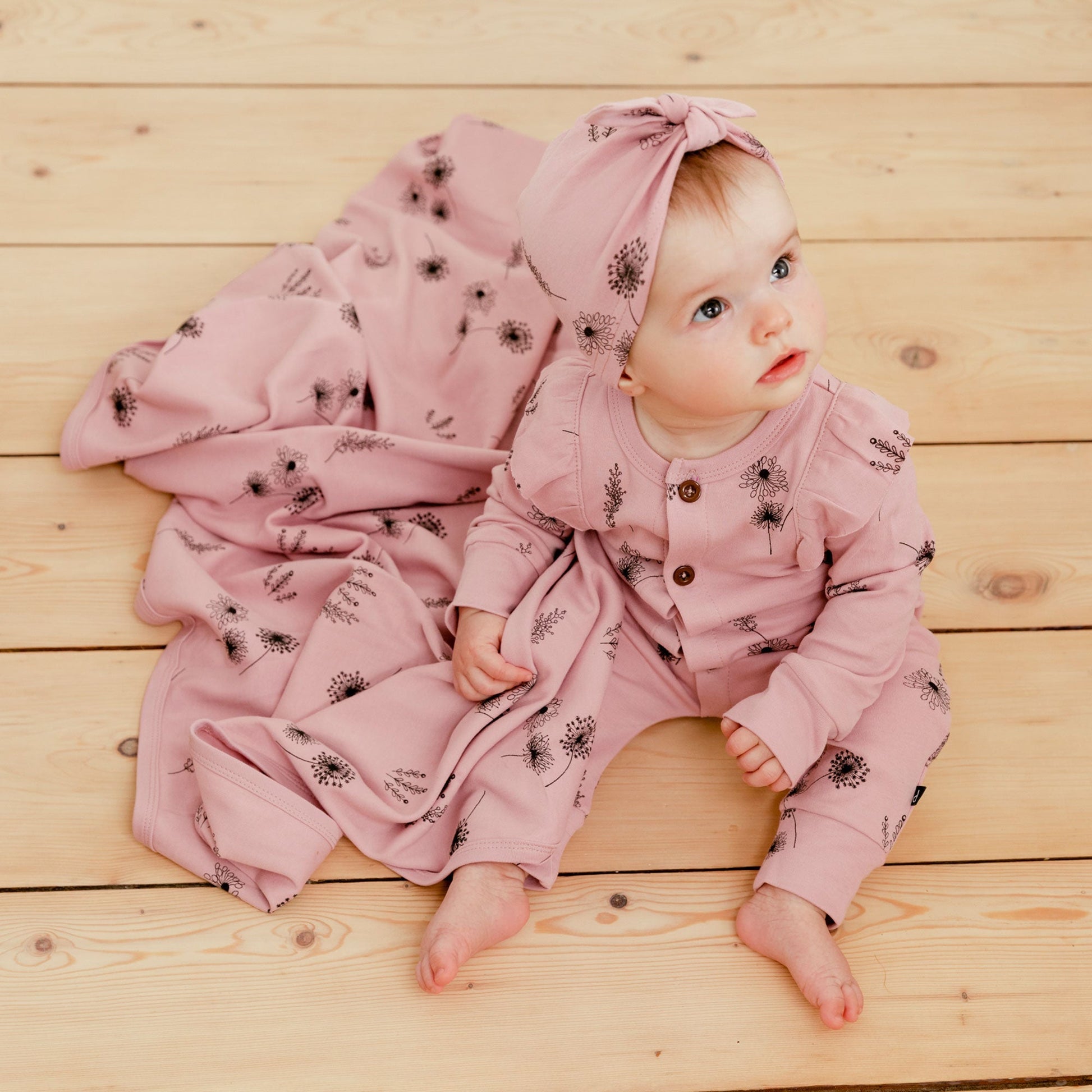 When chilly days or nights call for an extra layer, our Organic Cotton Blanket Printed Flowers Dusty Purple will help her get cozy and warm. This blanket is ultra-soft and features an allover floral print with solid binding and a small logo label at the edge.