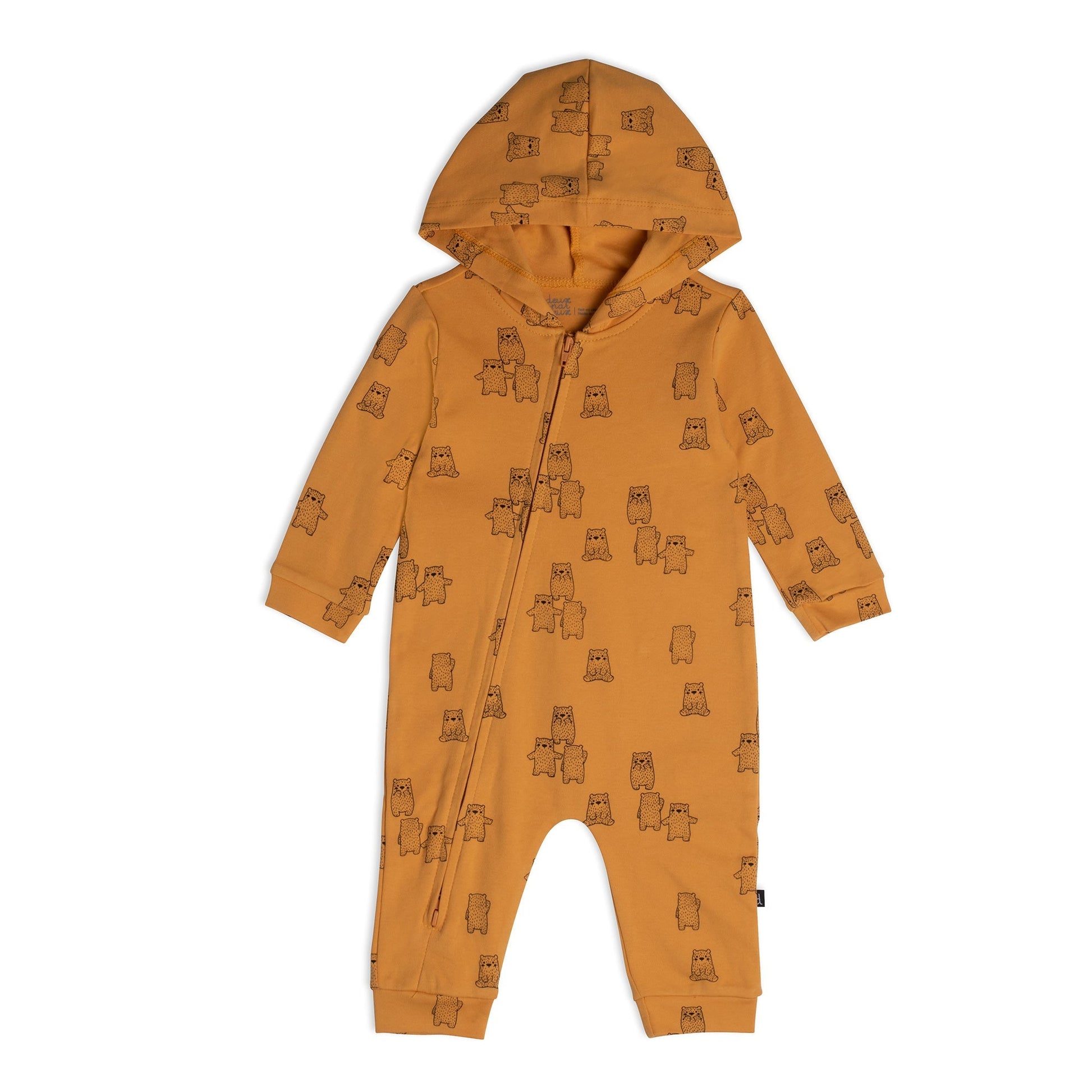 Playing, lounging, or learning new things, our Organic Cotton Jumpsuit Teddy Bear Print is perfect for any moment of any day. In a one-piece silhouette with an attached hood, this jumpsuit features long sleeves, an asymmetrical front zipper, and an allover teddy bear print.