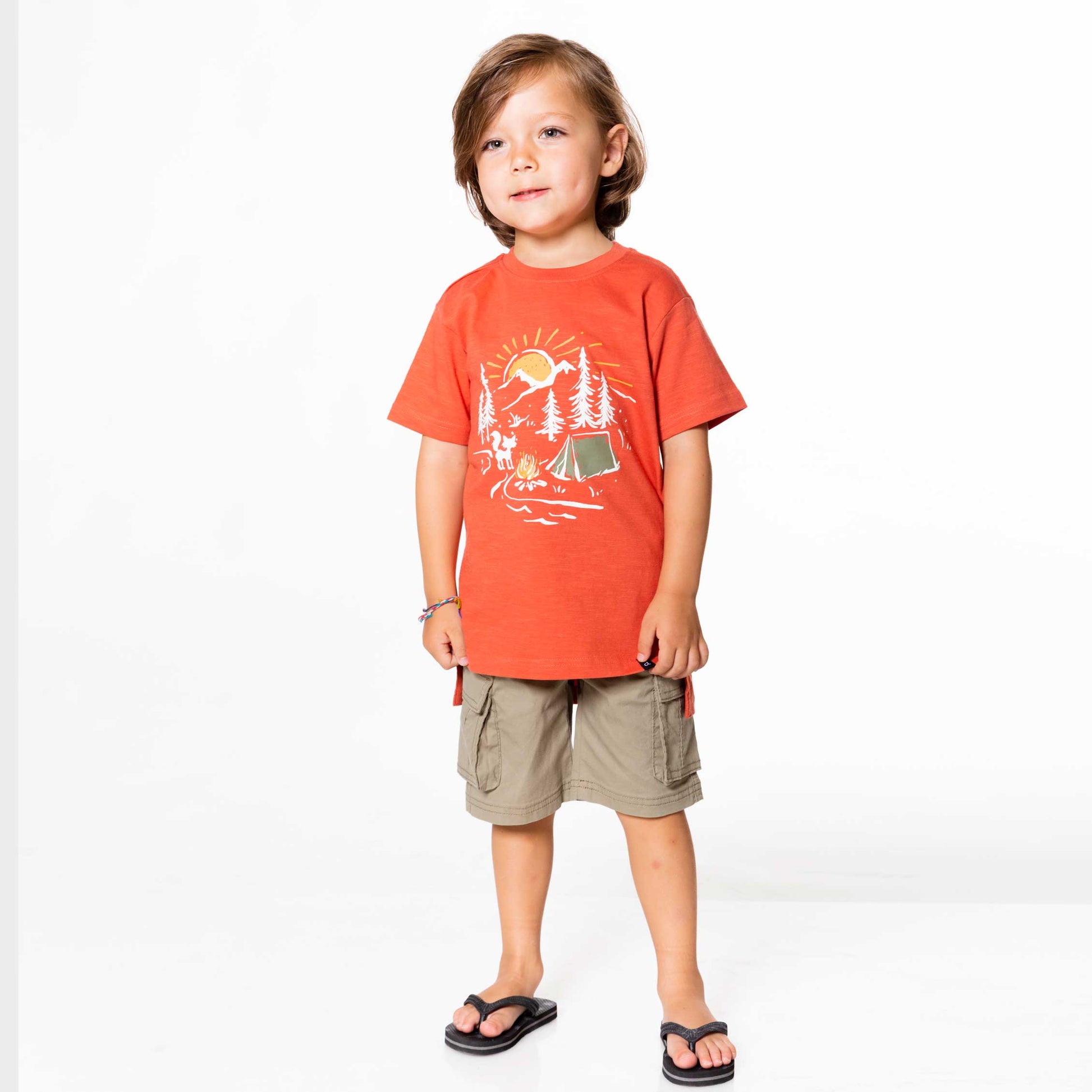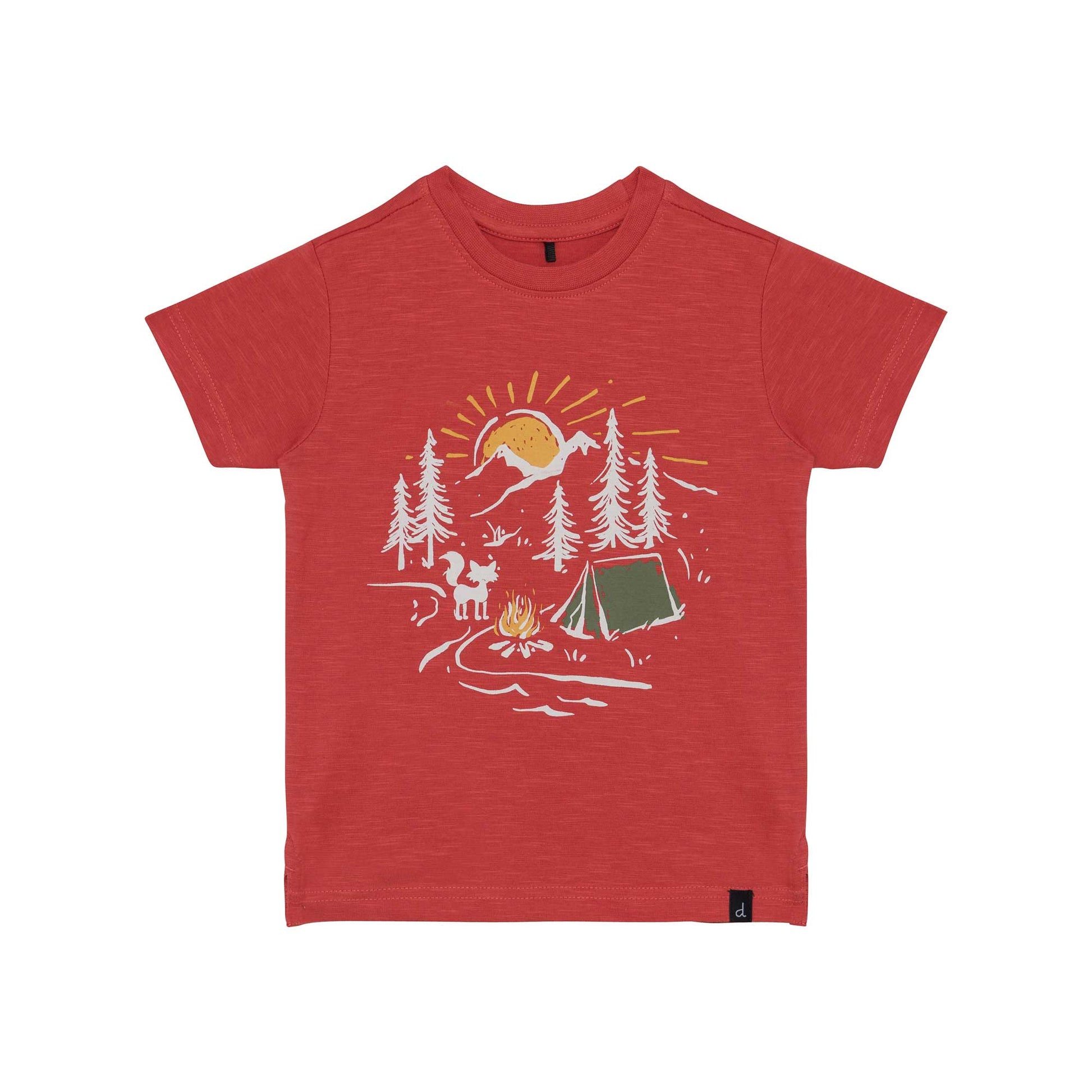 Our Printed Jersey Top Dusty Red adds color and style to any little boy's wardrobe. This comfortable tee is made from extensible cotton and features a relaxed fit with short sleeves, a crew neckline, and a playful camping print on the chest.