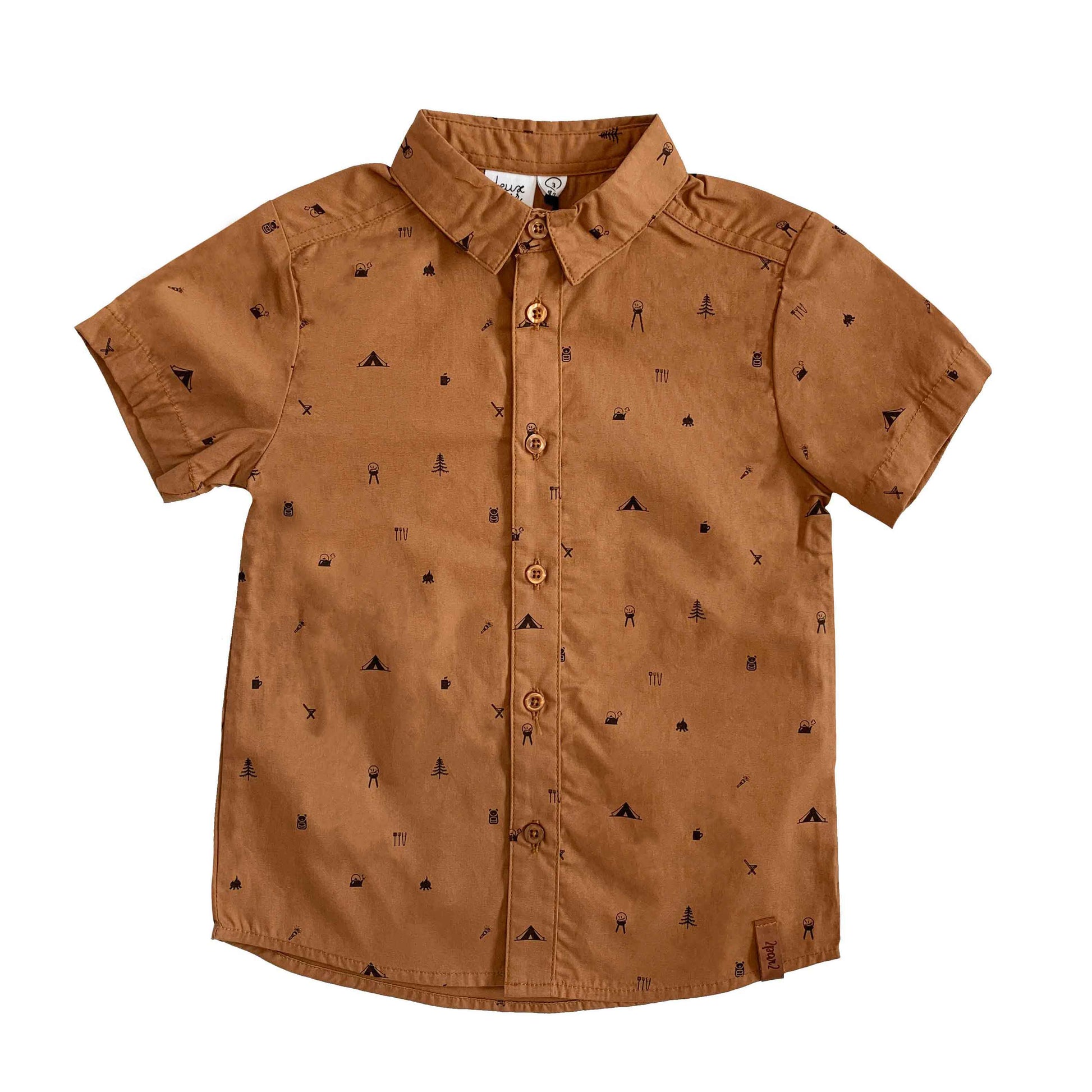 Detailed with novelty print pattern, our Short Sleeve Shirt Brown Camping Print is perfect for the little boy with a big sense of style. This shirt is made from 100% cotton, making it a comfortable choice for the little guy who demands all day style.