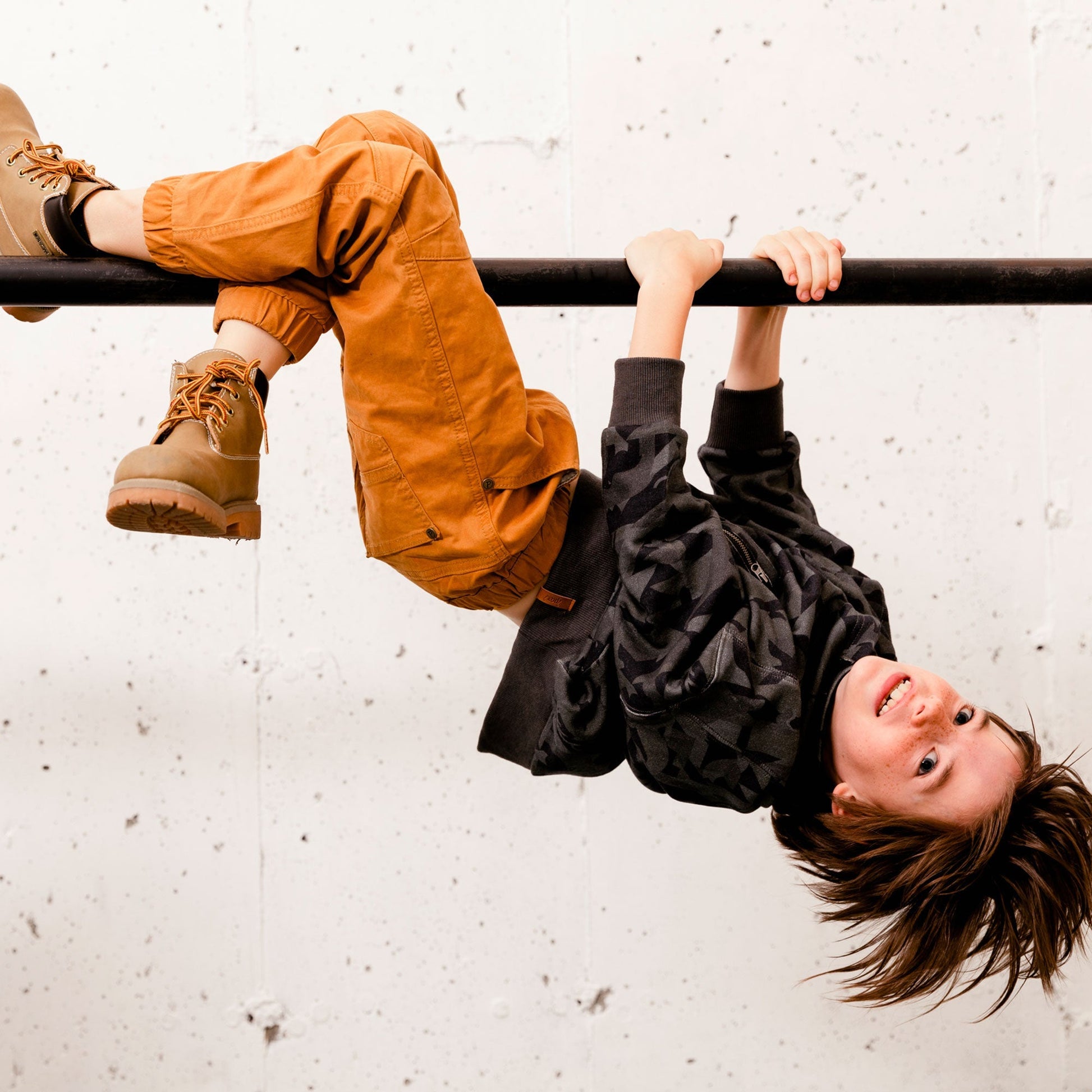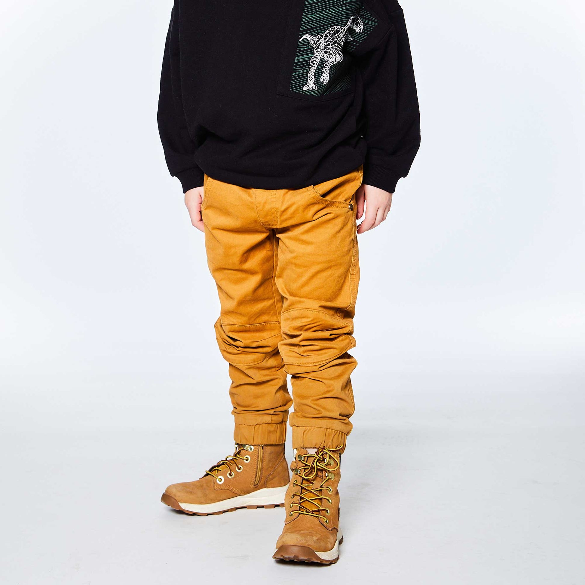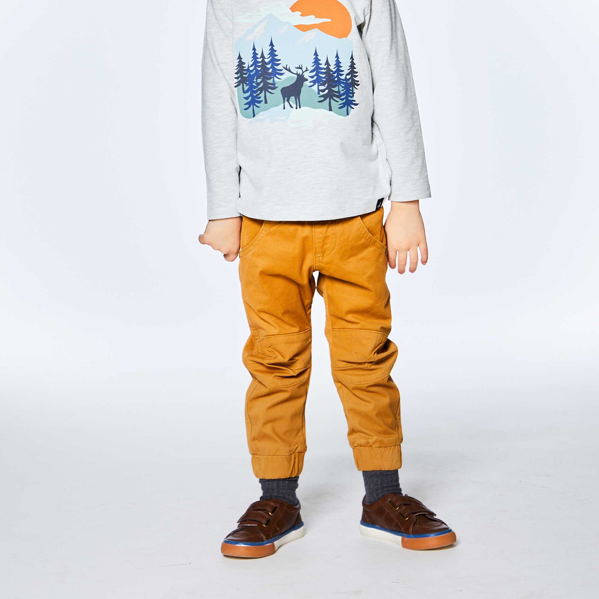 Easy to coordinate with any top, our Stretch Twill Jogger Brown Yellow is a must-have in every boy's wardrobe. These cotton twill pants feature a stretchy elastic waistband, scoop front pockets, elastic ankles, and articulate knees that add cool, contemporary touch.
